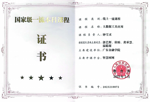 在这一过程中,学院高度重视一流本科课程的建设工作。由钟雪灵教授担任主要负责人,学院郭艺辉、侯昉、黄承慧等优秀教师共同精心打造的《大数据工具应用》课程,荣获了国家级一流本科课程的殊荣。该课程已形成了包括500多分钟教学视频、教学PPT、题库、实验报告等在内的一系列丰富教学资源,并配套出版了教材。课程自上线以来,广受各高校师生好评,累计选课学员已超过3.7万人。