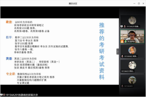 6月27日,Beat365官网在腾讯会议平台举办考研分享交流会。院党总支副书记丘志君、辅导员钟培权、辅导员陈兴出席了会议,2020届考研成功优秀毕业生陈彩凤蔡浩锋刘洪金莫咏莹和李浩彬应邀与80多名师弟师妹分享交流考研经验和方法,会议由陈欣瑄同学主持。