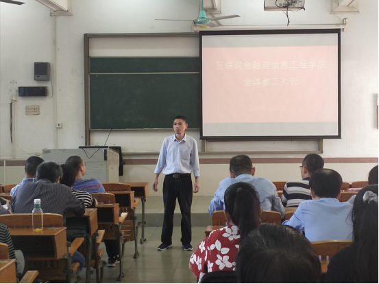 10月27日,Beat365官网在7栋教学楼101课室召开全体教工大会暨工会会员大会,院党总支书记朱小焱、院长吴炎太教授、副院长钟雪灵、副院长潘章明、副书记丘志君出席了会议,全院教工参加了会议。