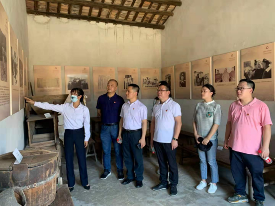 21日,参观学习团一行来到东莞市大岭山镇东江纵队旧址,在讲解员的带领下,先后参观了东江纵队大队部、会议室、大家团结报社、交通站、粮食加工场、操场、医务所、中山书院等抗日根据地旧址,观看了“南粤旌旗、东江铁流”东江纵队历史图片展,聆听了东江纵队不屈不挠、英勇抗日的革命历史,深刻领悟到东江纵队“南域先锋、海外蜚声、艰苦风范、永继永存”的革命精神,做到知史爱党、知史爱国。在大队部旧址前,在朱小焱的领誓下,到场同志重温了入党誓词。