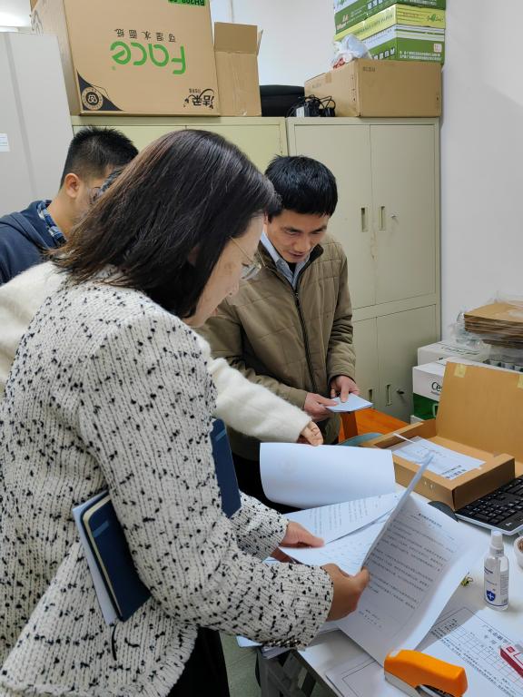 会后,检查组一行前往资料室,检查实习报告、电子试卷等教学档案和归档材料,并对发现的问题进行了现场指导。
