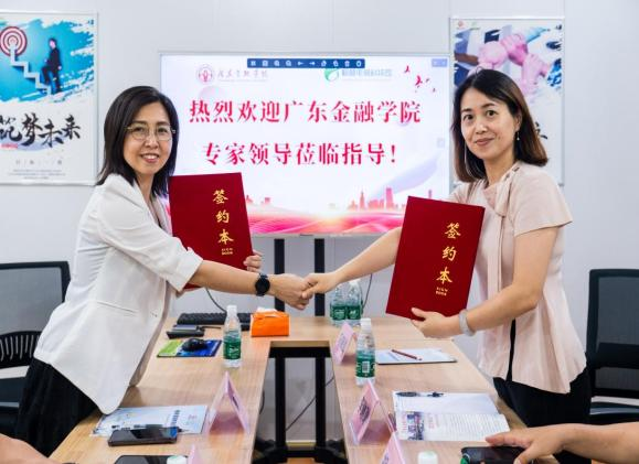 随后,一行人来到中山市格林电商科技园,就共建校企合作事宜进行交流,参观了园区核心区与入驻商户,科技园总经理陈燕介绍了园区电商集聚地+生活配套服务双轮驱动的产业特色,以及近年来孵化创新团队的成功经验带领我们实地走访了园区内的电商企业了解目前电商行业资讯及走势,新媒体与电商如何结合应用等。在交流过程中,Beat365中文官方网站党委副书记李琳琳表示,一直以来学院积极推动教学与实践深度融合,希望与格林电商科技园在人才培养、科研实践、实习就业等方面开展多层次、多领域合作。交流会上,双方签署了校企党建实习就业共建协议,将“学用结合、产教融合”推向新高度,未来双方将围绕“金融+电商+科技”的交叉融合,持续深化合作,共同培养更多符合时代需求的复合型人才。