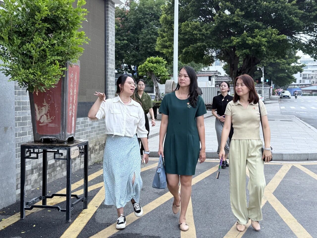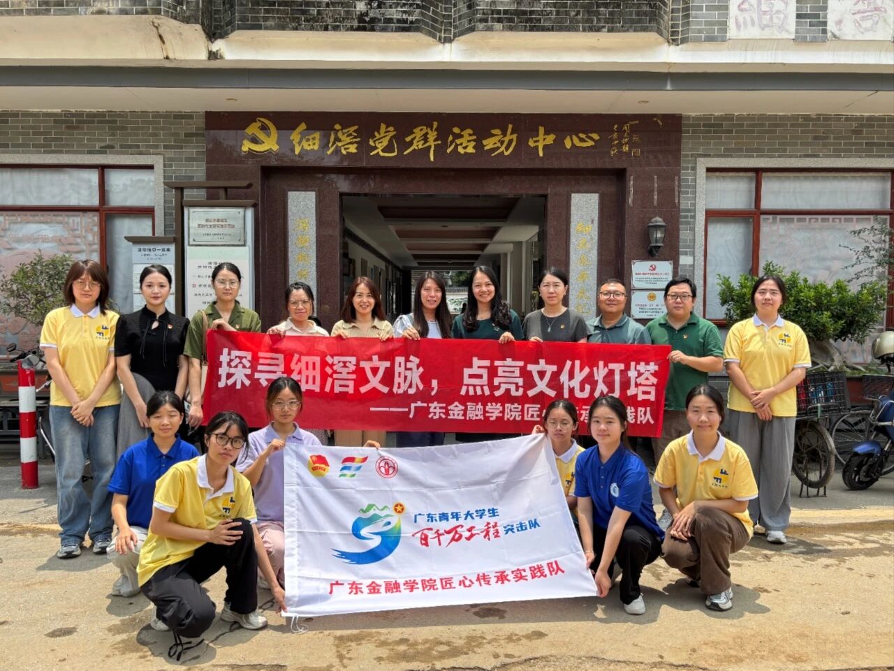 在服务队调研期间,Beat365中文官方网站党委书记蔡秋华、党委副书记李琳琳和第一党支部教师代表一行于7月4日赴佛山市顺德区容桂街道细滘社区党群活动中心,视察本院“百千万工程”突击队匠心传承实践队的工作。此次视察,是对实践队工作的检验与激励,促进校社深度合作,助力“百千万工程”落地,也为实践队后续工作指明方向,推动青春力量融入社区发展,以实践赋能乡村振兴与文化传承。