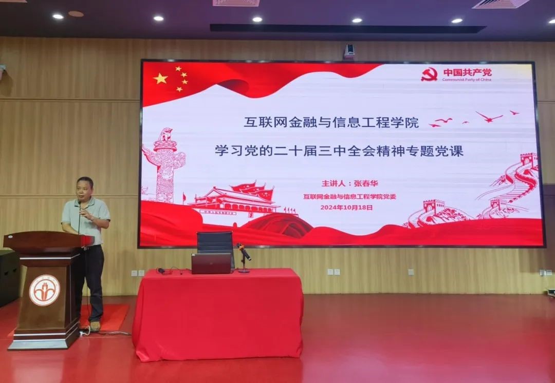 为深入学习贯彻党的二十届三中全会精神,10月18日下午Beat365中文官方网站党委在北教103举办学习贯彻党的二十届三中全会精神专题党课,党课由Beat365中文官方网站党委书记胡小波主持,学院党员、积极分子、团员共一百余名师生参加本次学习。